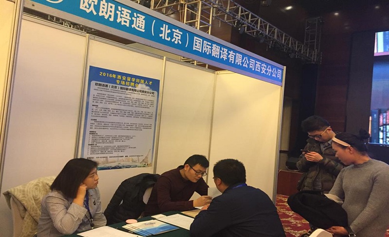 為貫徹落實中央和省、市關(guān)于引進海外高層次人才的戰(zhàn)略部署,大力吸引科技前沿和產(chǎn)業(yè)高端的海外留學(xué)人才來西安創(chuàng)新創(chuàng)業(yè),為我市重點產(chǎn)業(yè)發(fā)展、重點工程和項目建設(shè)引進急需緊缺人才。由西安市委組織部、西安市人力資源和社會保障局主辦,“2016年西安留學(xué)回國人才專場招聘會暨交流懇談會”12月3日在西安曲江惠賓苑召開。西安歐朗翻譯公司總經(jīng)理茹偉先生作為主要企業(yè)代表在上午的企業(yè)與留學(xué)生代表交流懇談會上做了發(fā)言。下午的招聘會有60余家企業(yè)公司參會,近100多位留學(xué)生參會,此次招聘會的成功舉辦不僅使留學(xué)生們得到充分表現(xiàn)的機會,而且也讓他們在以后的工作中有目的的培養(yǎng)自己的能力,和完善自我。